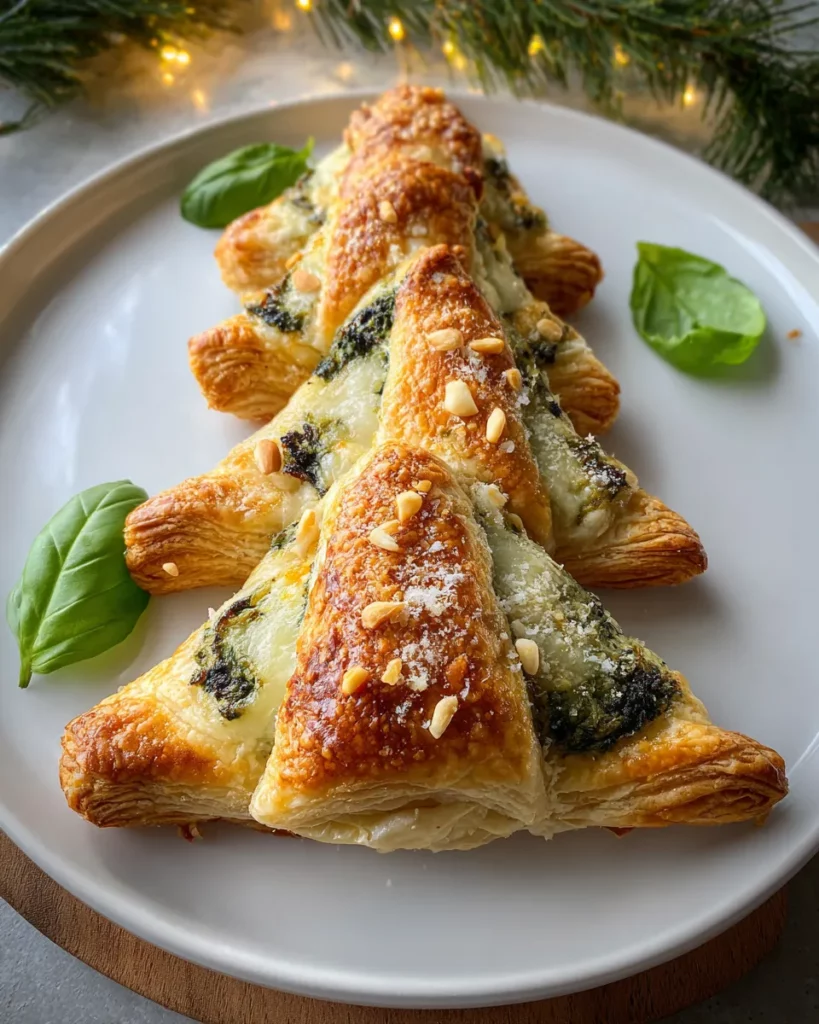 Basil Pesto Cheesy Puff Pastry Christmas Tree