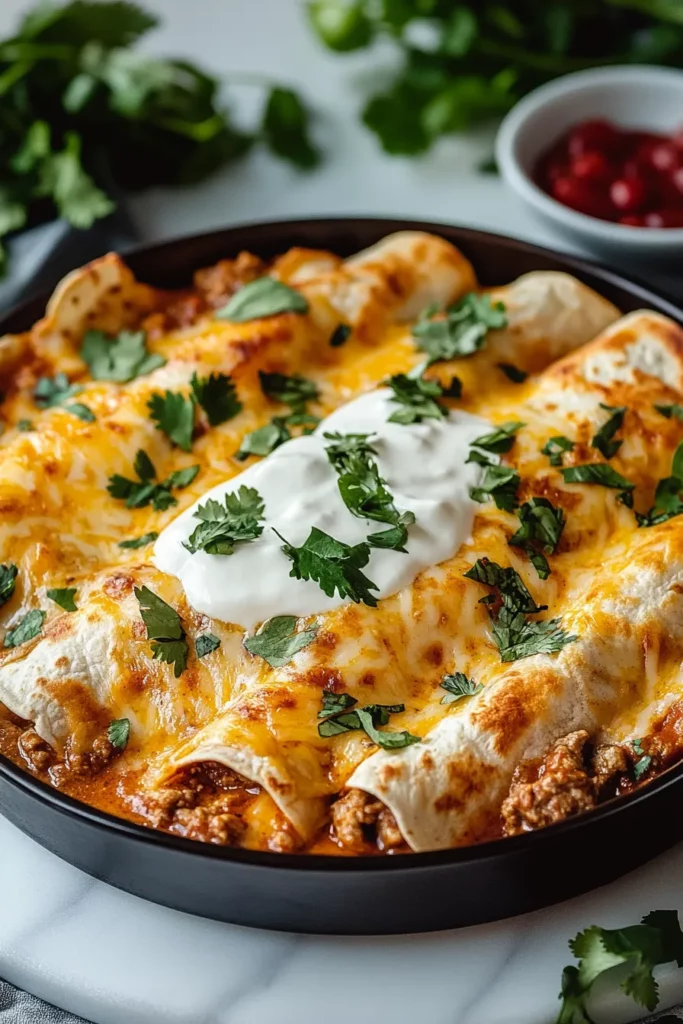 These beef enchiladas are a flavor-packed delight, featuring seasoned ground beef, tangy enchilada sauce, and melted cheese all wrapped in soft tortillas. Perfect for any occasion!