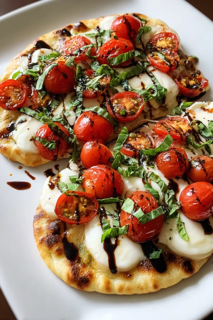 Bringing this Caprese-inspired creation to life is as straightforward as it is satisfying. With just a few simple steps, you’ll transform everyday ingredients into a visually stunning and flavorful pizza alternative. Preheat your oven, assemble your ingredients, and get ready to savor the magic of bubbling cheese and toasty naan in under 20 minutes.
