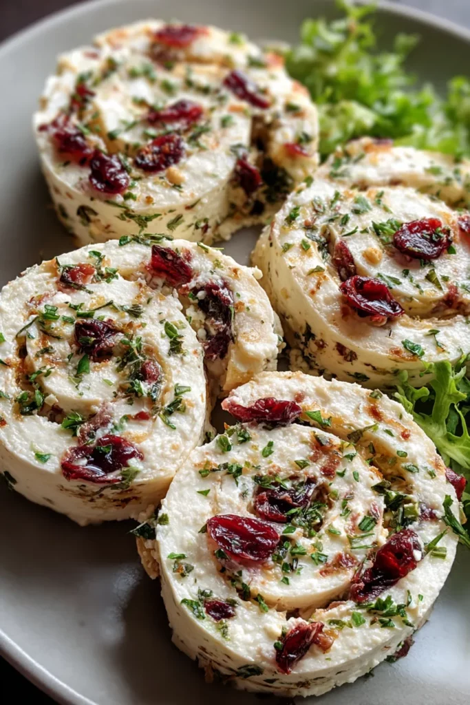 Cranberry Cream Cheese Pinwheels with Feta & Herbs