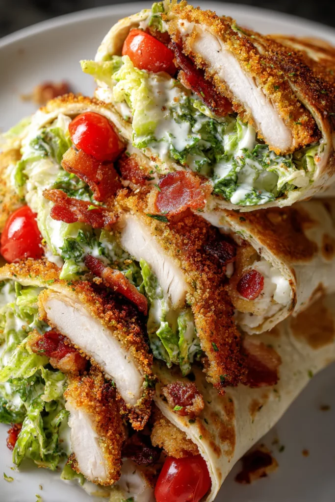 These wraps combine crispy chicken, crunchy romaine, rich Caesar dressing, and savory bacon, all wrapped in a warm tortilla. It's the ultimate flavor experience!
