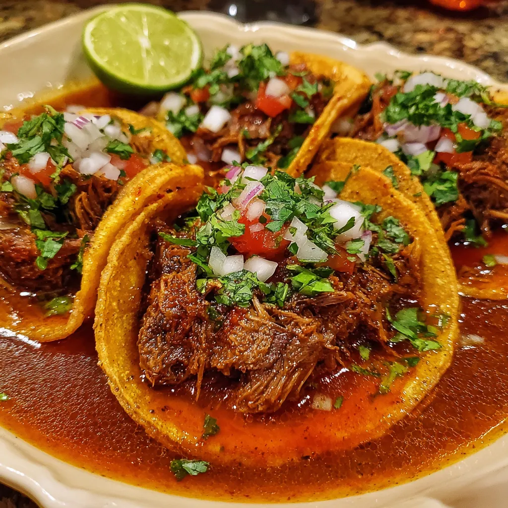 What really sets these birria tacos apart is the layered depth of flavor achieved by toasting dried chiles, blending them into a rich sauce, and letting the beef slooowly cook until fall-apart tender. You get tender, juicy meat, smoky broth for dipping, and bright garnishes that dance on your palate. It’s soft, saucy, and so addictive you might just swoon. Go ahead and print this article to stash in your recipe box—it’s destined to be a crowd-pleaser. If you try it, leave a comment or drop a question—I’d love to hear how your birria adventure went!