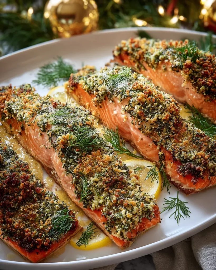 Festive Herb-Crusted Christmas Salmon with a Lemon-Dill Glaze