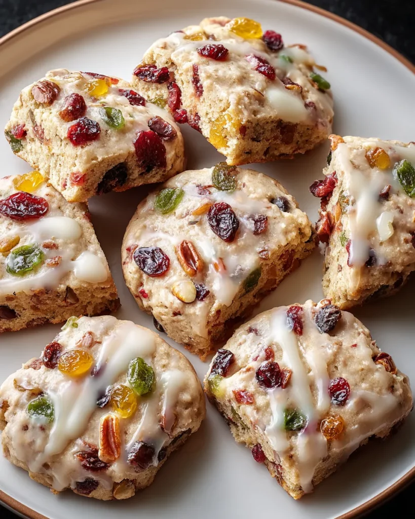 Experience the perfect blend of buttery shortbread, mixed dried fruits, and a sweet glaze in every bite. These cookies are a delightful treat that brings holiday cheer to your table!