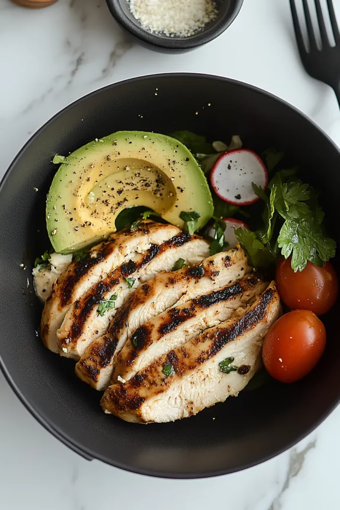 This Grilled Chicken & Avocado Salad Bowl isn’t just another pretty dish—it’s a celebration of color, texture, and bold flavor that fits seamlessly into any mealtime routine. We’ve walked through every detail, from the smoky spice rub that clings to tender chicken to the creamy avocado slices that melt in your mouth, balanced by crisp greens, juicy vegetables, and a tangy balsamic dressing. Whether you follow this guide verbatim or put your own spin on the spices and veggies, you’ll end up with a satisfying, protein-packed meal that feels light and refreshing. Keep in mind the prep takes just 15 minutes, the cooking another 15, and a brief five-minute rest time ensures the chicken is as juicy as possible. At around 550 calories per serving, it’s a nutritious choice for lunch or dinner, and the gluten-free ingredients make it accessible to many dietary needs.