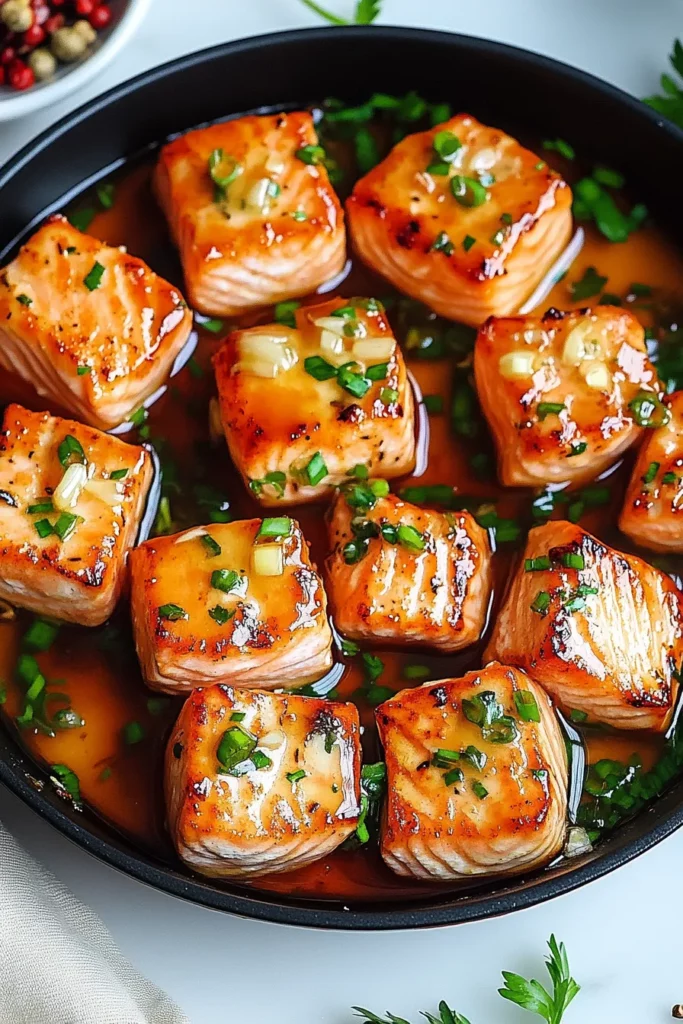 Honey Butter Garlic Glazed Salmon Bites