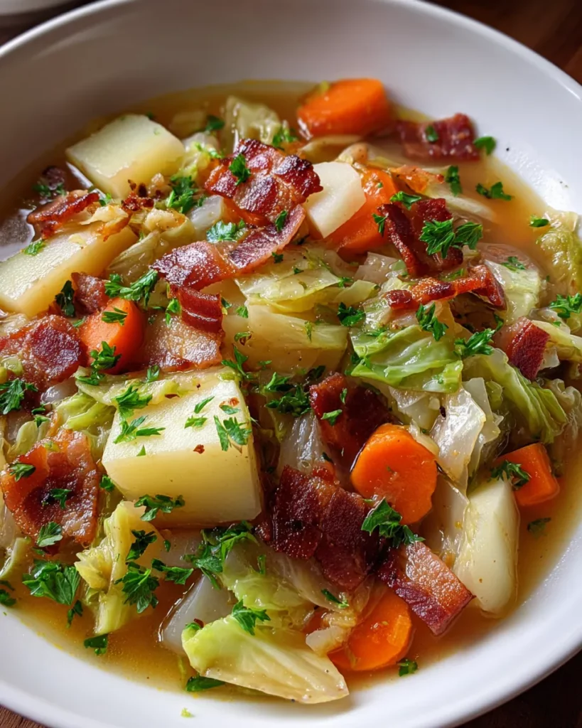 Experience the comforting blend of crispy bacon, tender potatoes, and savory cabbage in this warming Irish soup, perfect for chilly days and cozy gatherings.