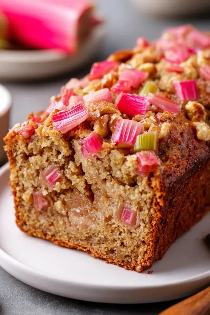 Once cooled, slice and enjoy your moist rhubarb bread.