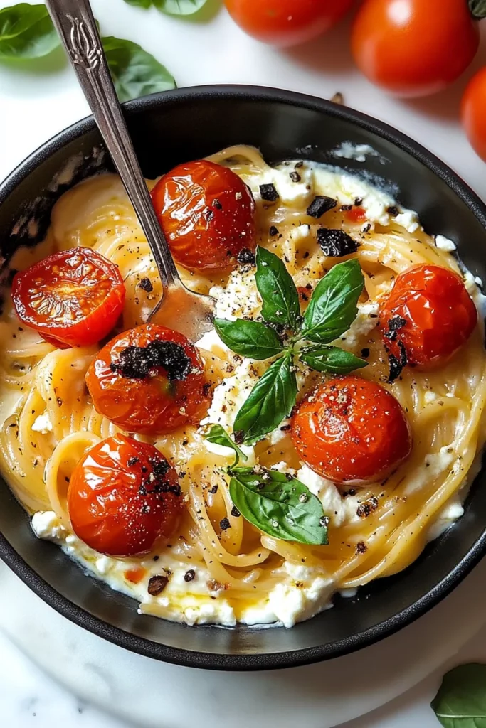 Rich ricotta mingles with sweet roasted tomatoes and fragrant garlic, creating a creamy pasta dish bursting with freshness and flavor. It's a comforting yet elegant meal that’s perfect for any occasion.