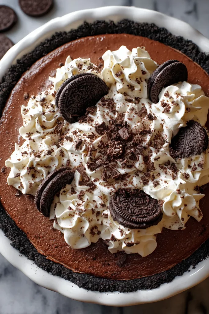 This Thanksgiving Chocolate Oreo Pie features a luscious chocolate filling atop a crispy Oreo crust. It's sweet, creamy, and a delightful twist on traditional pies that everyone will love.