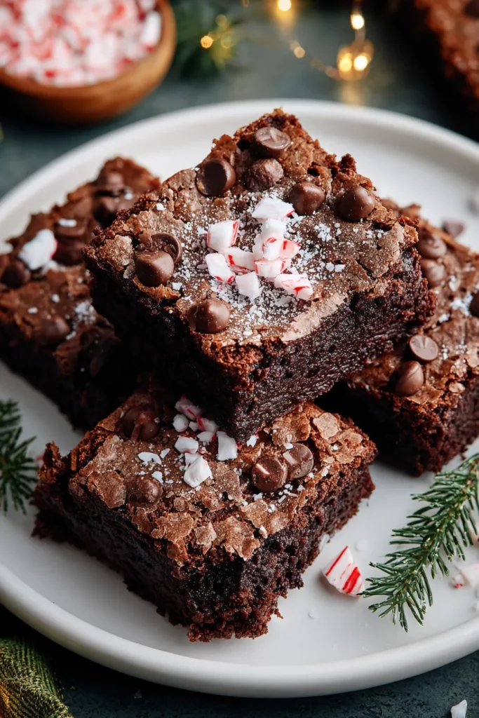 Arrange the brownies on a holiday-themed platter, interspersed with fresh mint leaves or cranberries. This elevates your dessert table and makes serving a breeze.